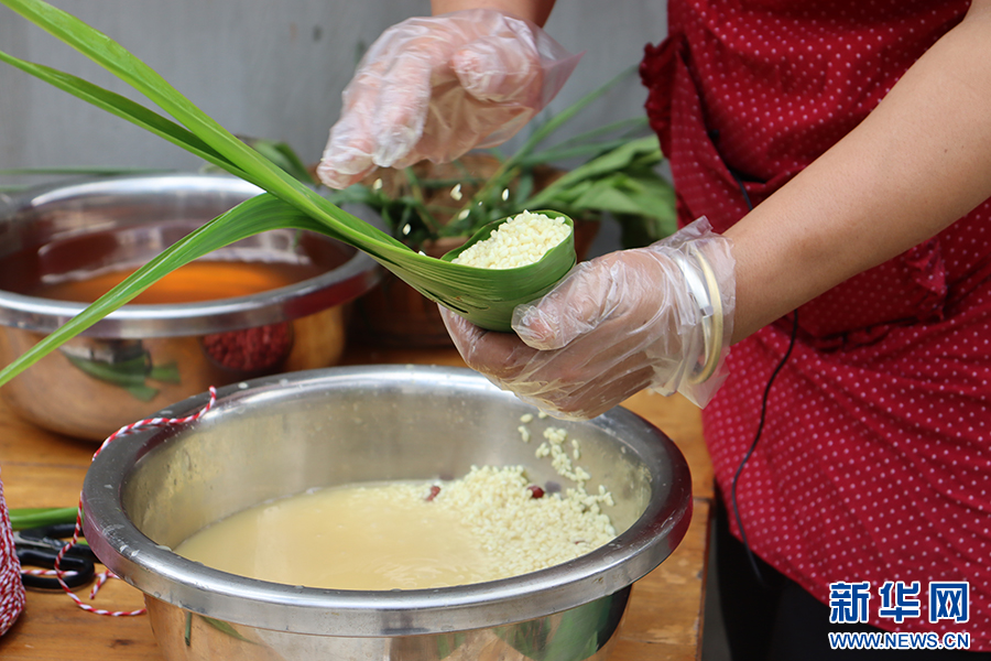 包粽子(攝于6月7日)。新華網發(寧洱縣融媒體中心供圖)