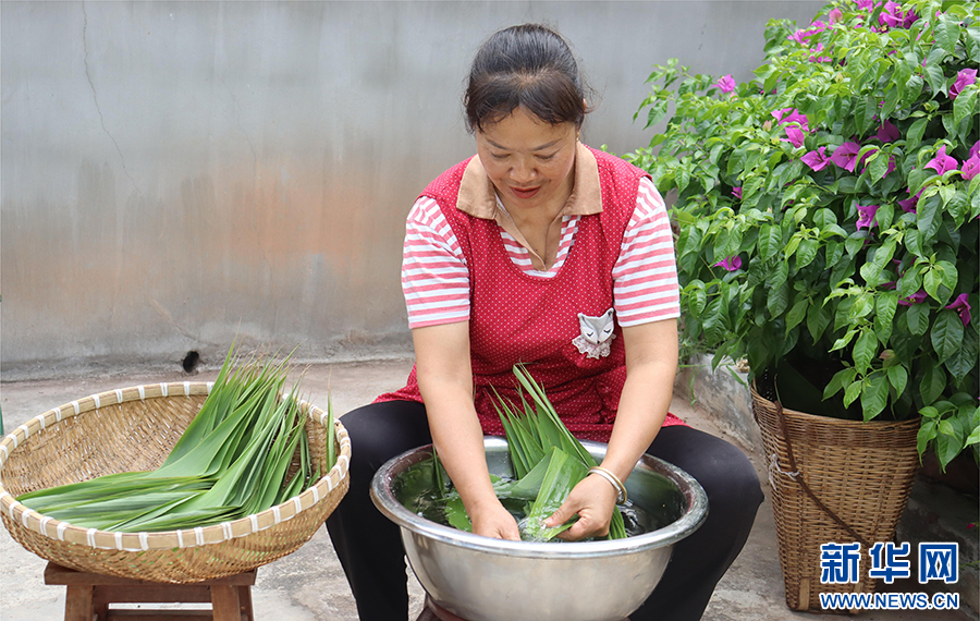 清洗粽葉(攝于6月7日)。新華網發(寧洱縣融媒體中心供圖)