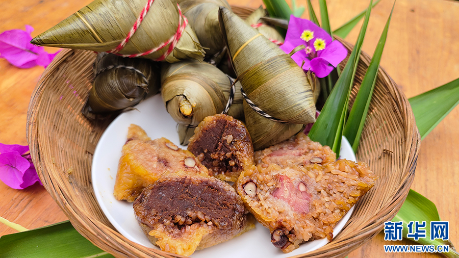 寧洱縣傳統的灰水粽,有臘肉、豆沙、花生和純糯米幾種口味。煮熟后的粽子入口軟而香甜,滑而不膩。(周恕 蘇紅亮 陶蕭屹 王蓮)