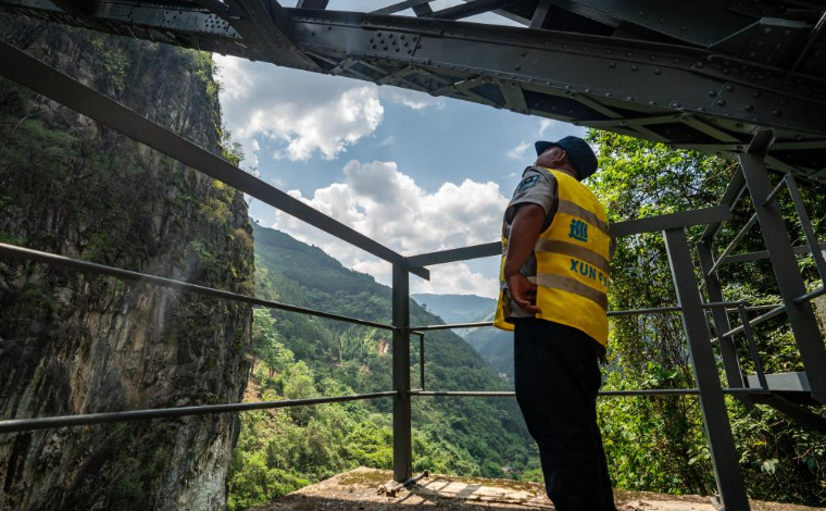 6月25日,工人在云南省會澤縣娜姑鎮云峰村的光伏項目現場施工。