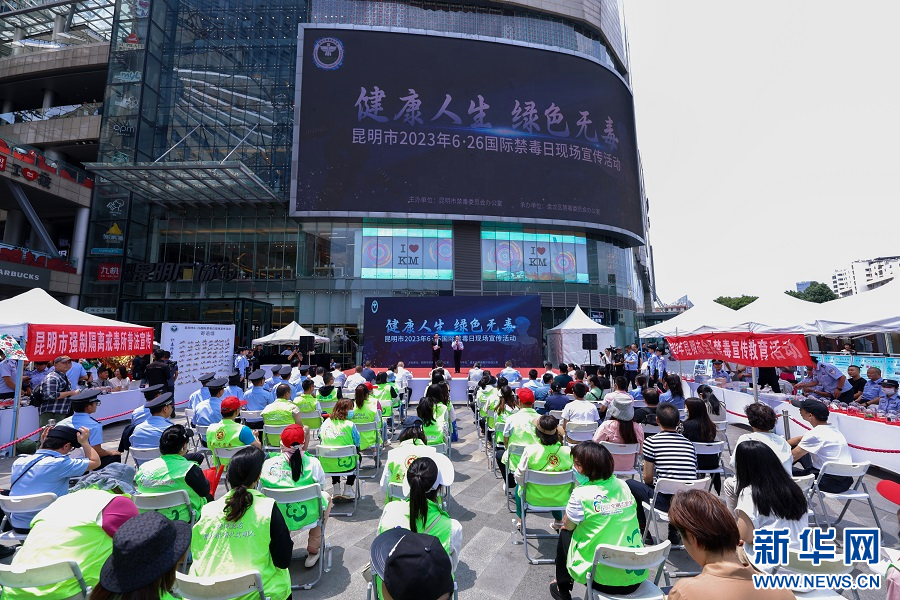 26日,昆明市禁毒委員會辦公室聯合盤龍區禁毒委員會辦公室開展以“健康人生,綠色無毒”為主題的2023年“6·26”國際禁毒日現場宣傳活動。