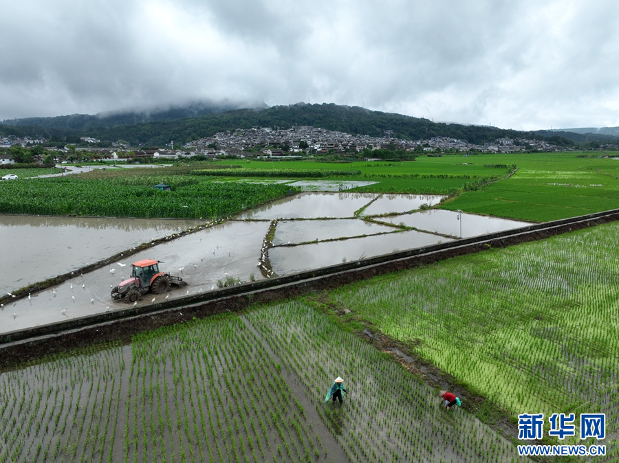 白鷺伴農耕(6月27日攝)。新華網發(龔祖金 攝)