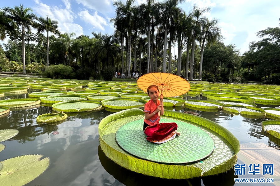 “一葉當舟誰敢比?凌波馭浪頌王蓮?!苯?,中國科學院西雙版納熱帶植物園中的王蓮進入最佳觀賞期,慕名而來的游客紛紛到王蓮池拍照留念,體驗一葉當舟的樂趣。