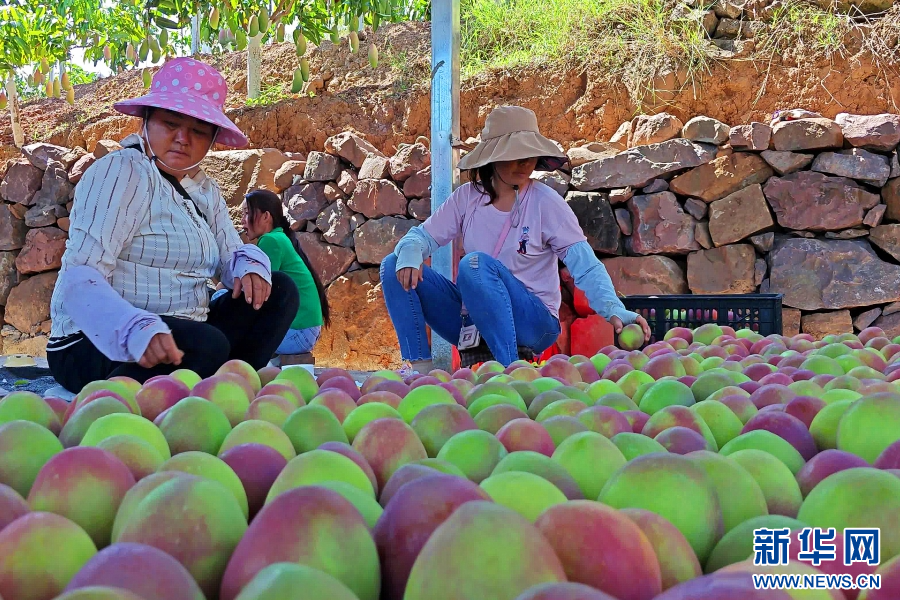 果農在采摘芒果(6月28日攝)。新華網發(蘇波 攝)
