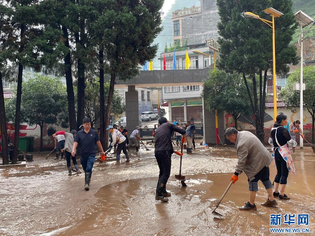 7月2日,昭通市鎮雄縣魚洞鄉組織干部群眾開展防汛救災工作。