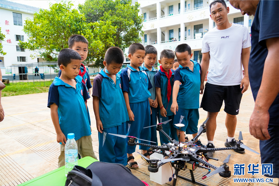 云南省模型運動管理中心老師向同學們講解植保無人機(6月29日攝)。新華網發(段宗智 攝