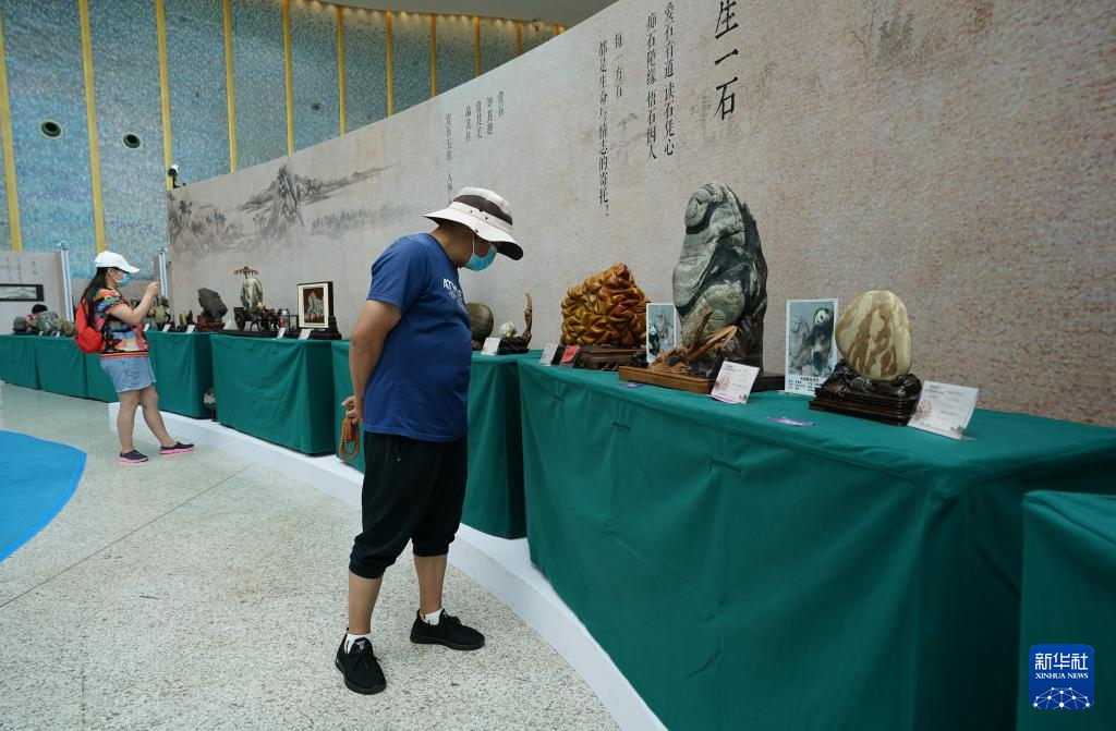 7月6日,參觀者在石博會上觀看各類奇石。新華社記者 陳欣波 攝