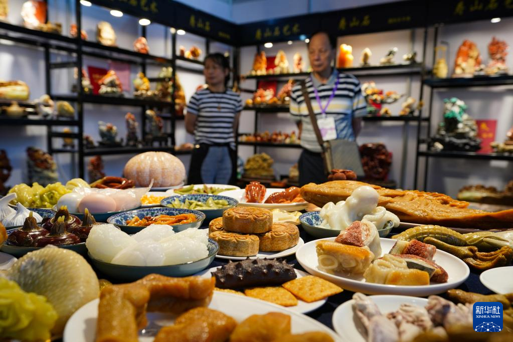 這是7月6日在石博會上拍攝的各類菜肴石雕。新華社記者 陳欣波 攝