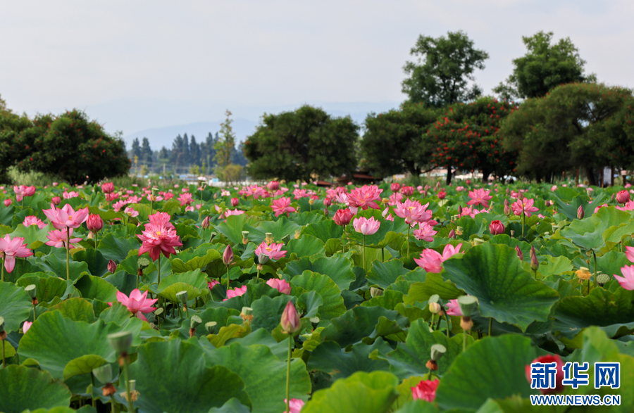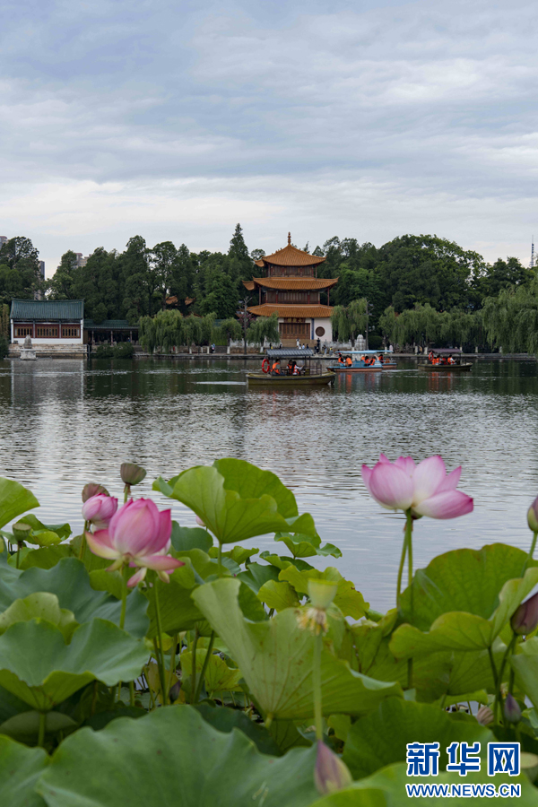 昆明市大觀公園內荷花競相綻放(6月24日攝)。新華網發(鄭益 攝)