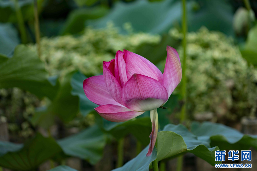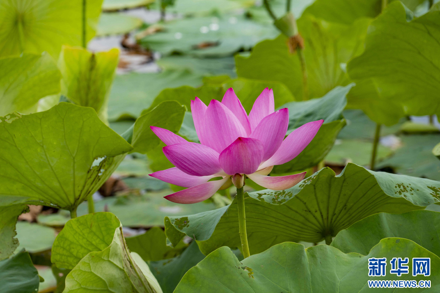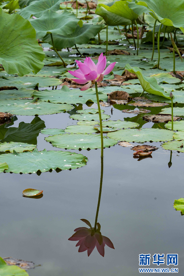 彌勒市湖泉生態園內亭亭玉立的荷花(6月11日攝)。新華網發(鄭益 攝)