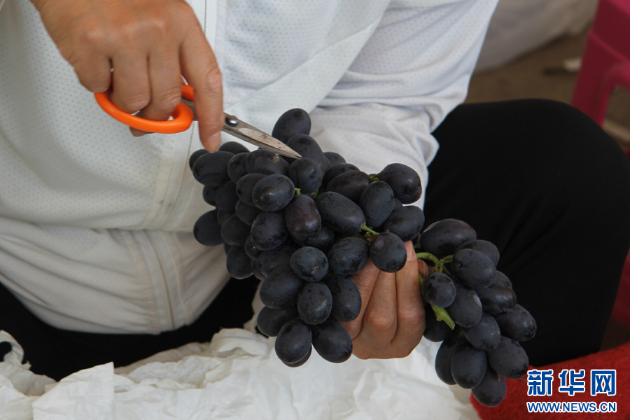 紫翠無核葡萄(6月25日攝)。新華網發(王琳 攝)