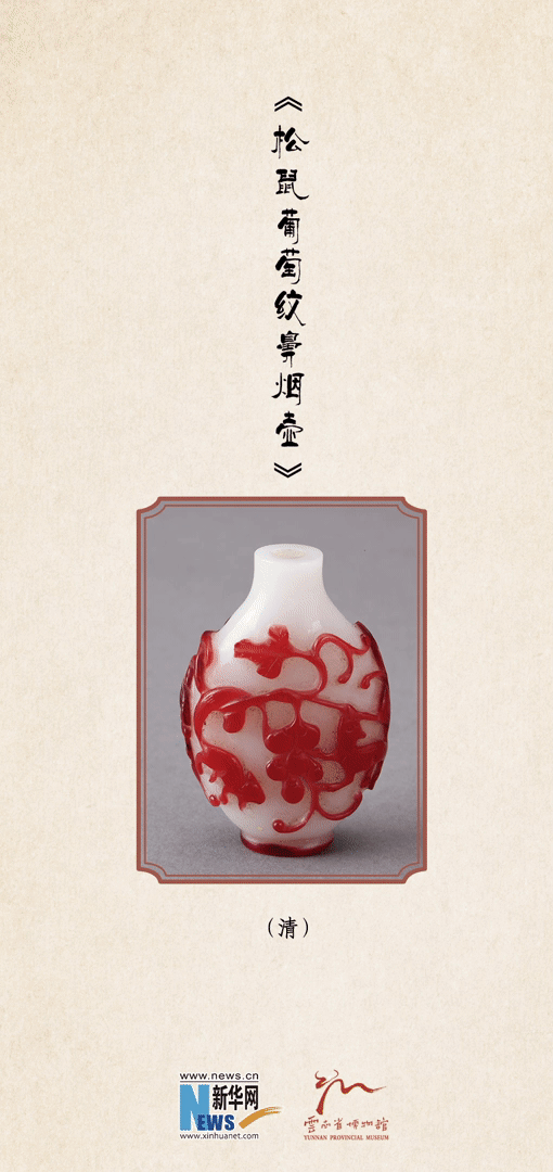 (清)白地套紅料松鼠葡萄紋鼻煙壺