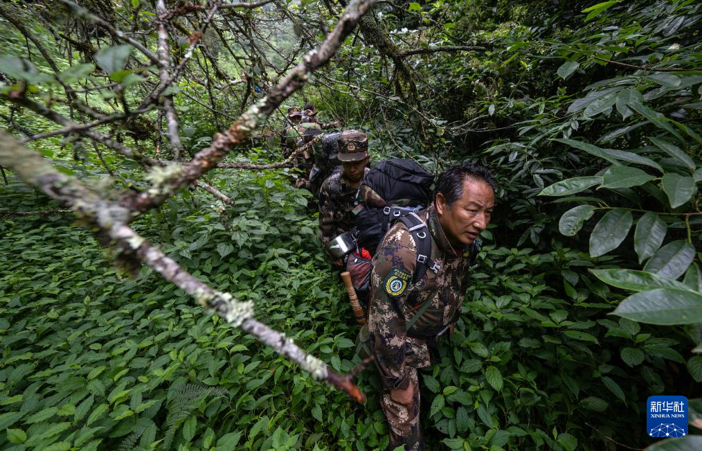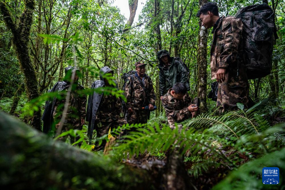7月8日,巡護隊員在高黎貢山國家級自然保護區中行進。