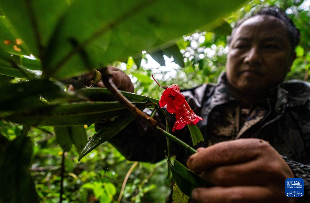 7月9日,何貴品在高黎貢山國家級自然保護區采集植物樣本。