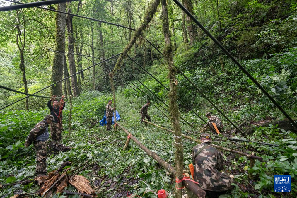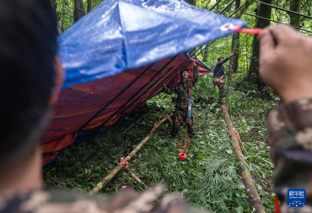 7月8日,巡護隊員在高黎貢山國家自然保護區搭棚子。