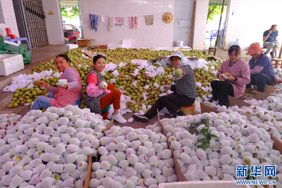 分揀裝箱的鷹嘴桃(7月4日攝)。新華網發(張玨 攝)