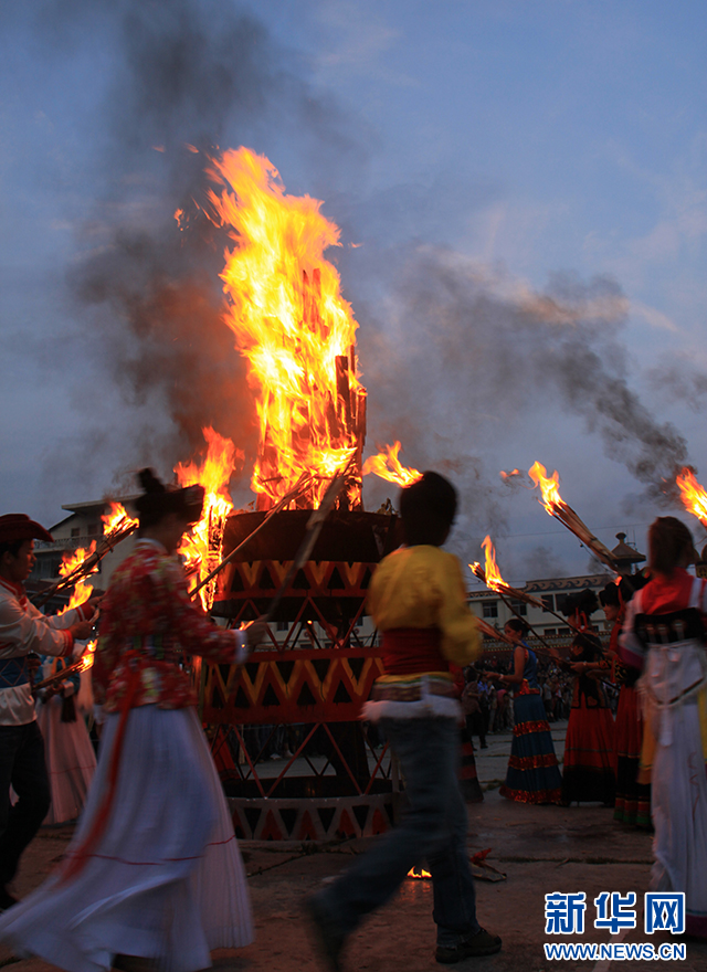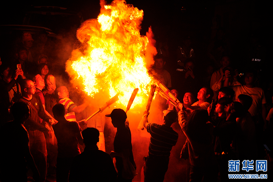 人們點燃火把,共同慶?;鸢压潱ㄙY料圖)。新華網發(楚雄市融媒體中心 供圖)