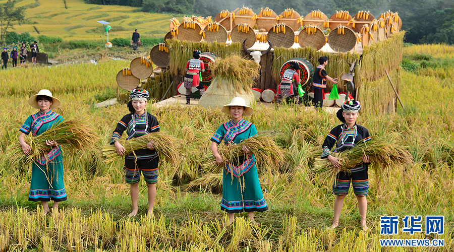 哈尼族群眾慶祝豐收(資料圖)。新華網發(元陽縣融媒體中心 供圖)