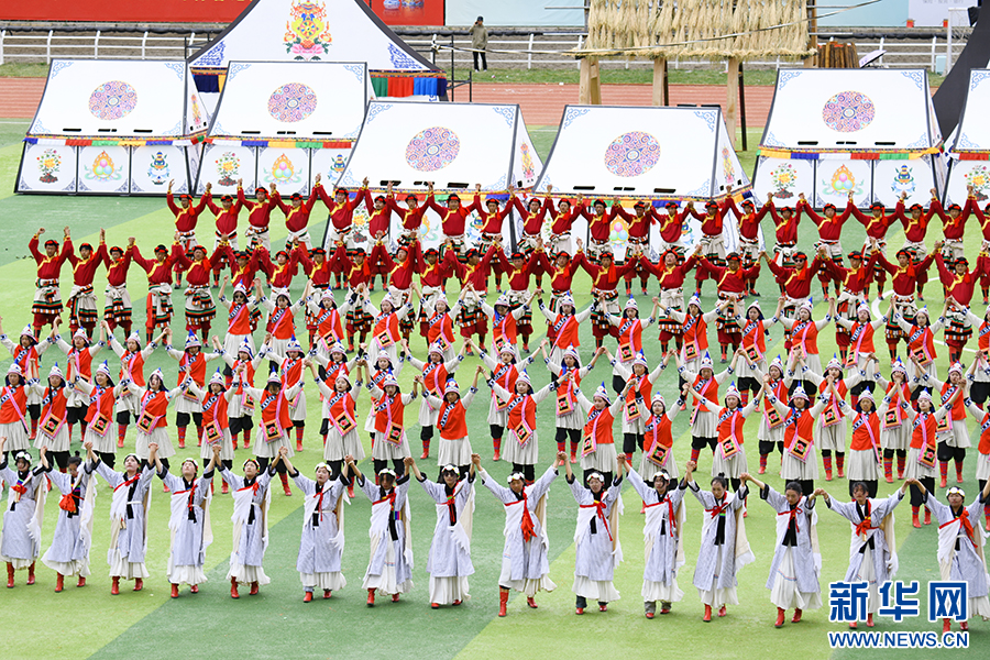 云南迪慶·香格里拉2023年端午賽馬節開幕式現場,人們載歌載舞共同慶祝節日的到來(6月22日攝)。新華網發(迪慶日報社 供圖)
