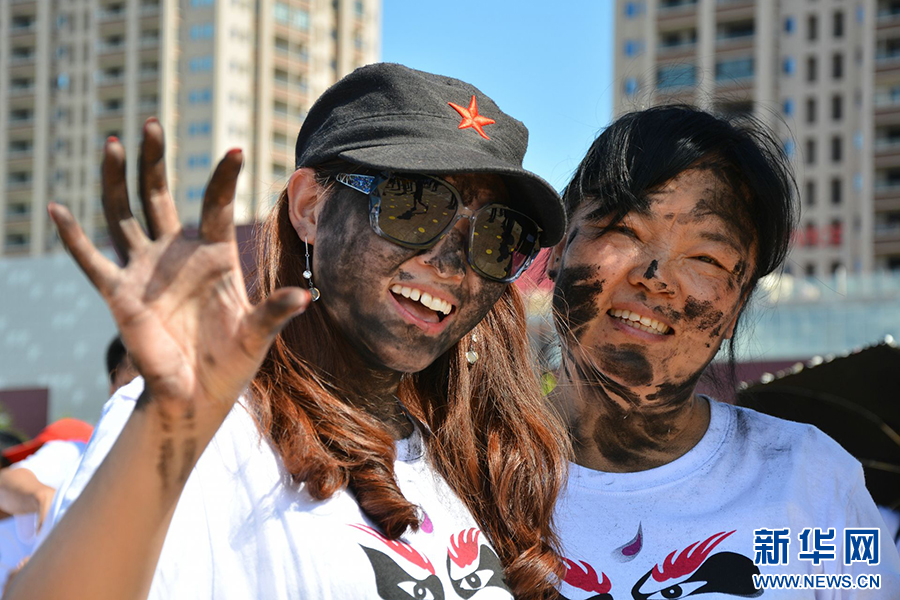 “花臉節”現場,人們互相抹黑臉部祈愿吉祥(資料圖)。新華網發(李明 攝)
