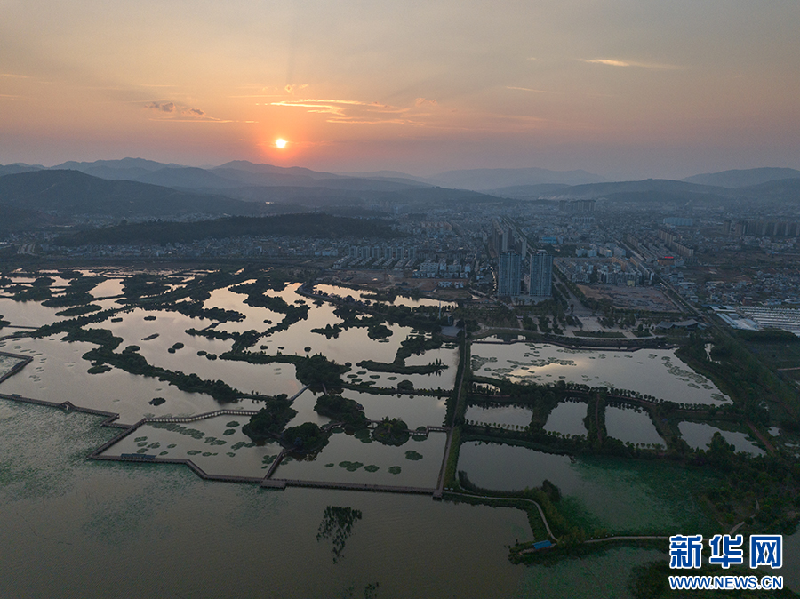 航拍異龍湖(攝于4月23日)。新華網發(劉東 攝)
