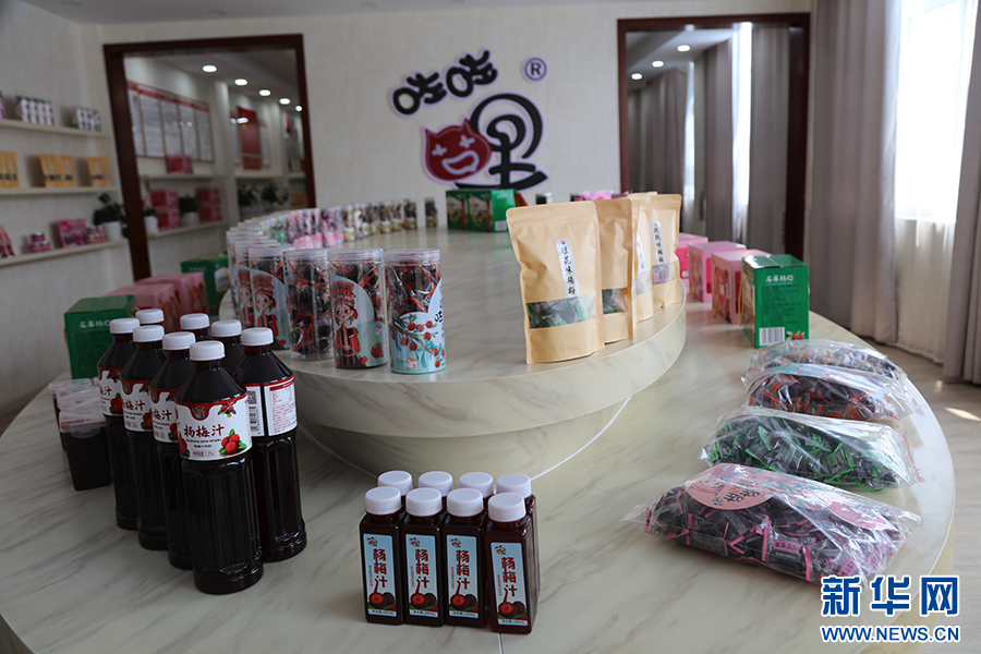 用楊梅開發出的系列產品(攝于4月23日)。新華網 范芳鈺 攝