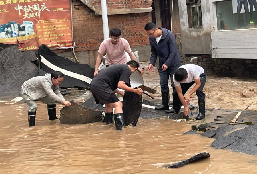 7月2日,云南省昭通市鎮雄縣組織干部群眾在魚洞鄉開展防汛工作。(新華社發)