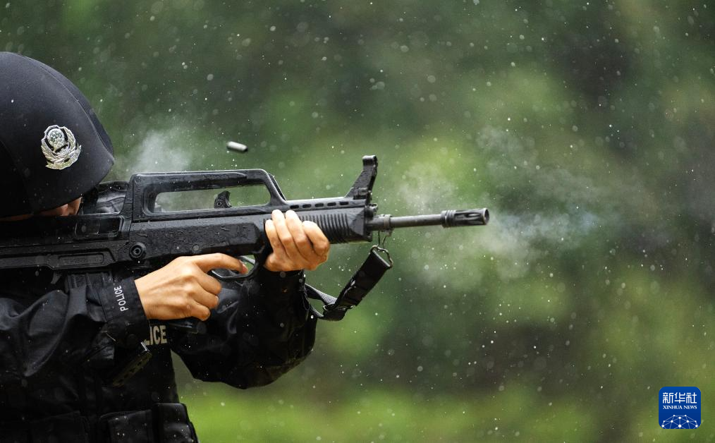 7月13日,尹銘燕(右)在進行射擊訓練。