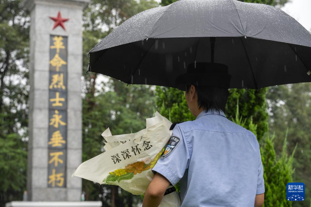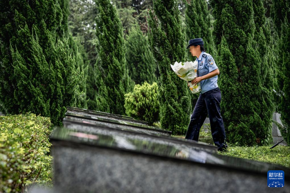雨中,一把黑傘,一束白花,一身警服的尹銘燕拾級而上,走向云南德宏州隴川縣烈士陵園的最高處,那里長眠著她的哥哥尹銘志。