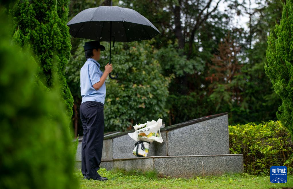 7月12日,在隴川縣烈士陵園,尹銘燕向哥哥尹銘志的墓獻花。