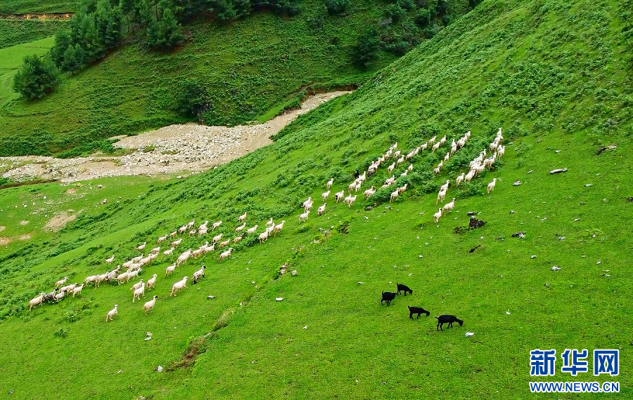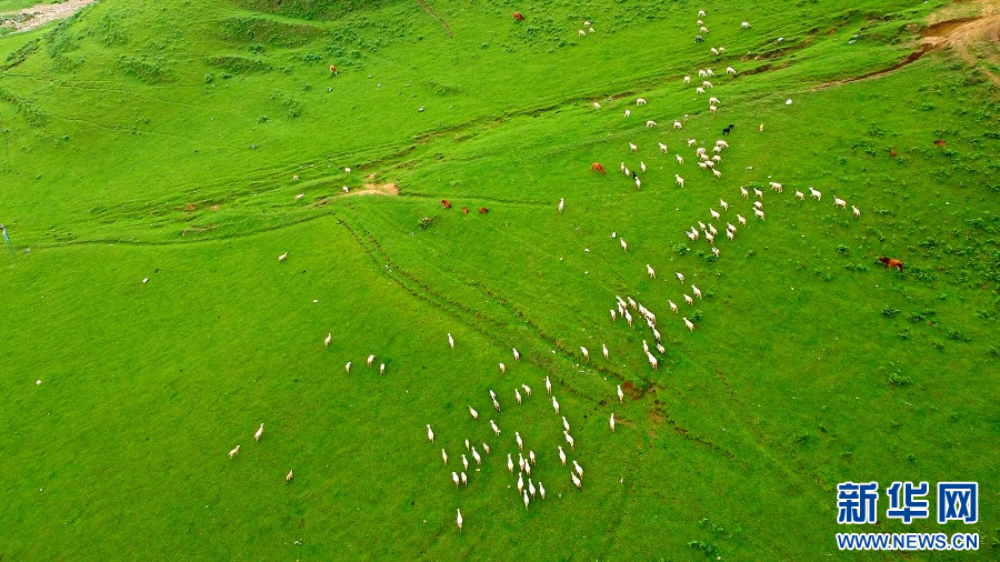 航拍草原上的牛羊(7月8日攝)。新華網發(郭康 攝)