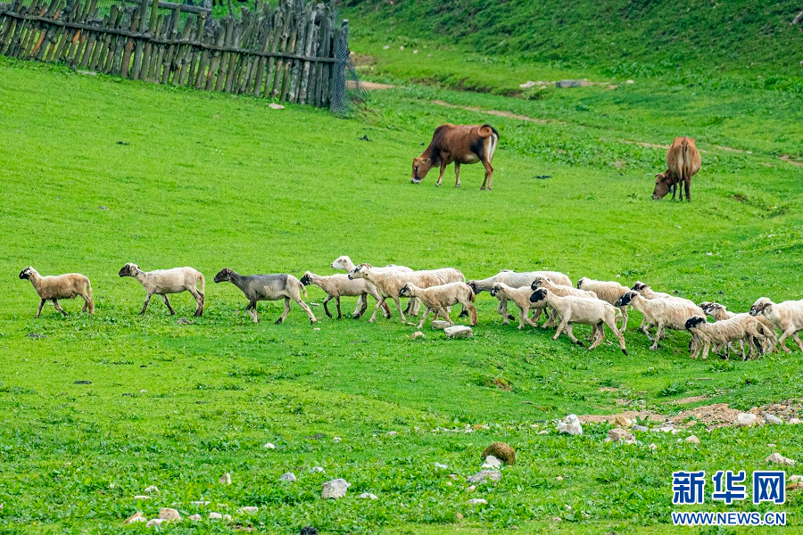 草原上的牛羊(7月8日攝)。新華網發(郭康 攝)