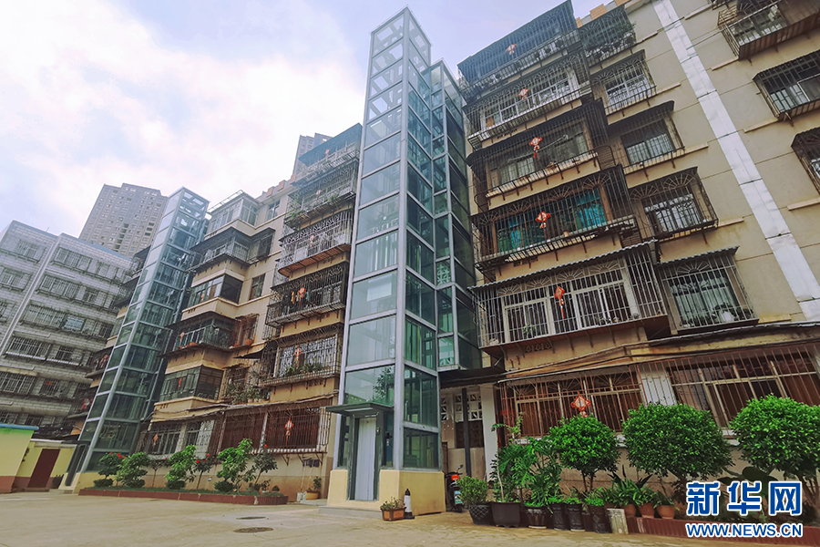 關嶺路89號院經過改造,5個單元已經裝上電梯(7月13日攝)。新華網發(甘露 攝)。