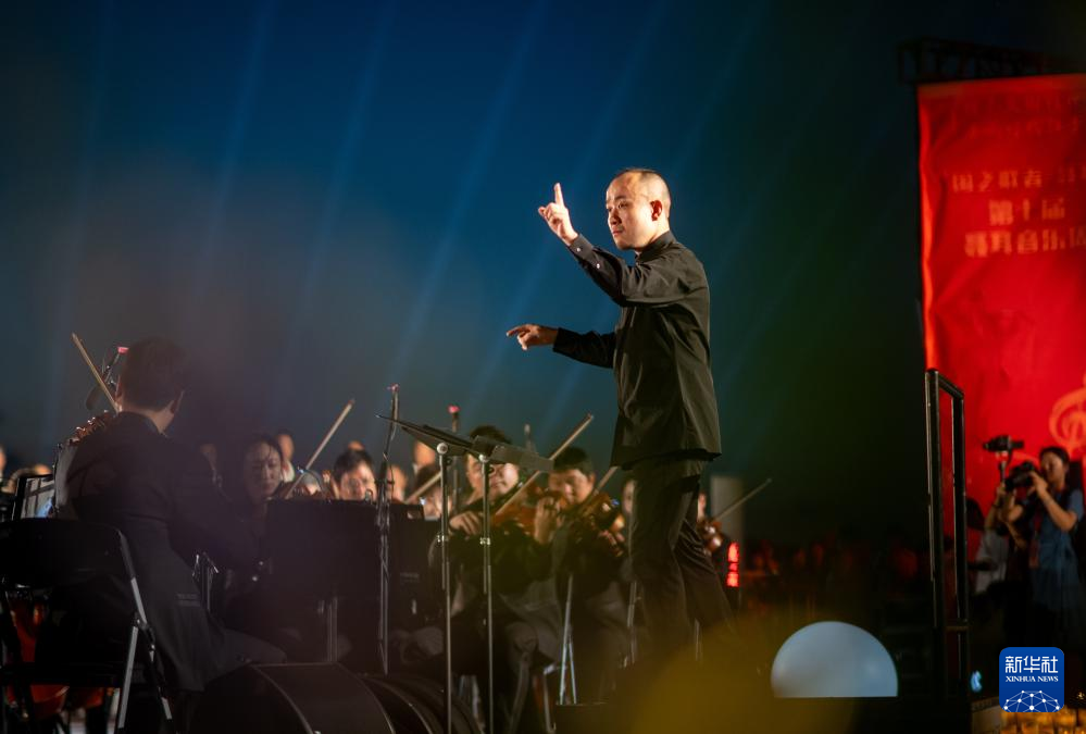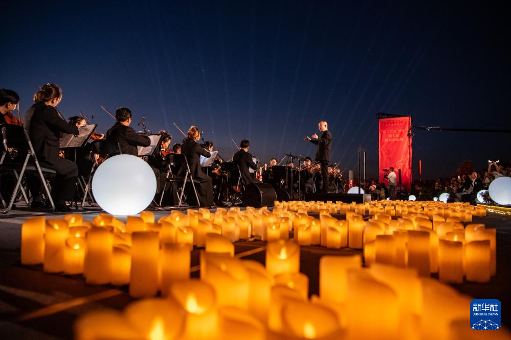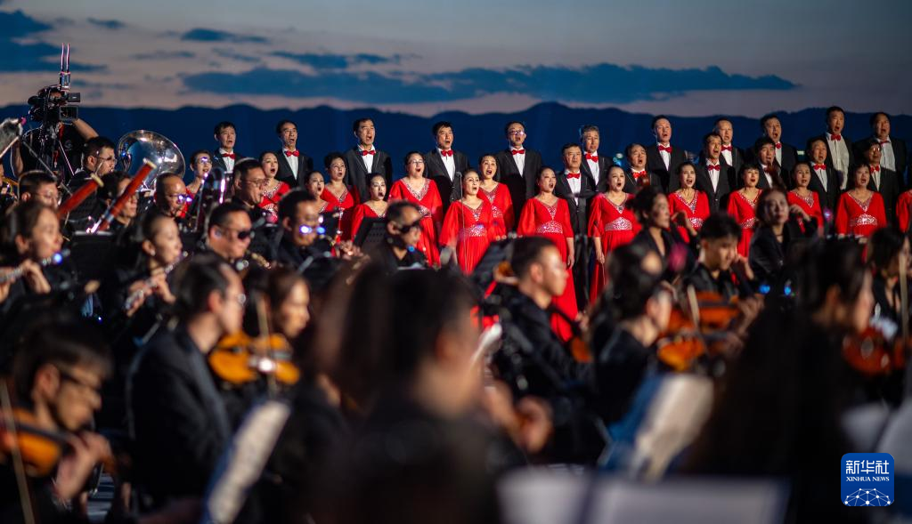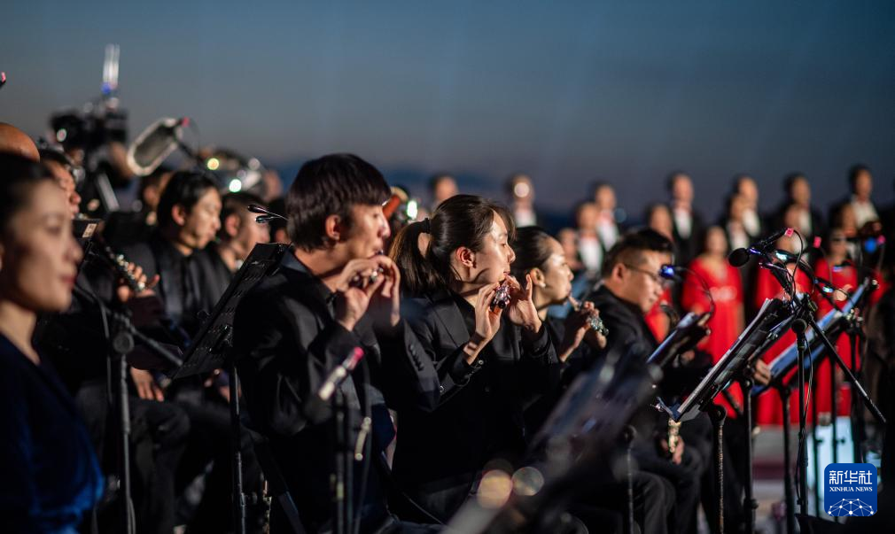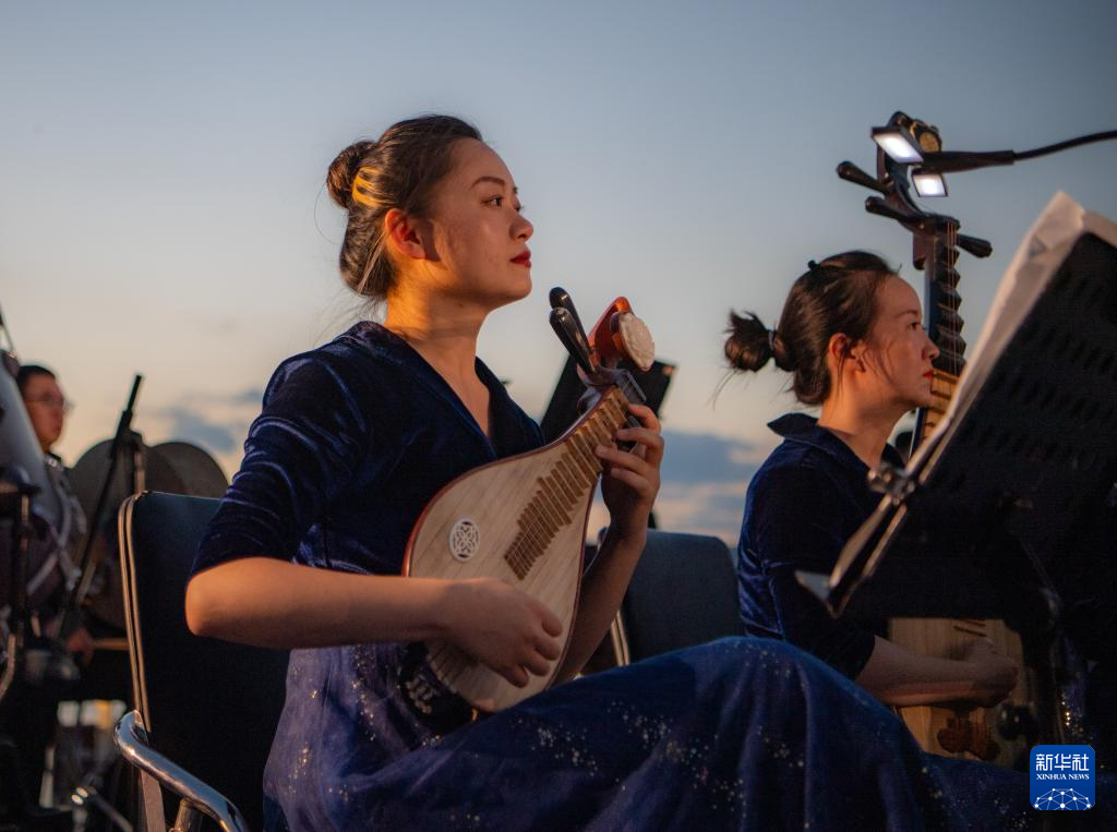 來自昆明聶耳交響樂團及昆明市民族歌舞劇院民樂團的演奏家們在昆明市滇池畔共同演奏包括《義勇軍進行曲》《賣報歌》在內的聶耳代表作(7月17日攝)。