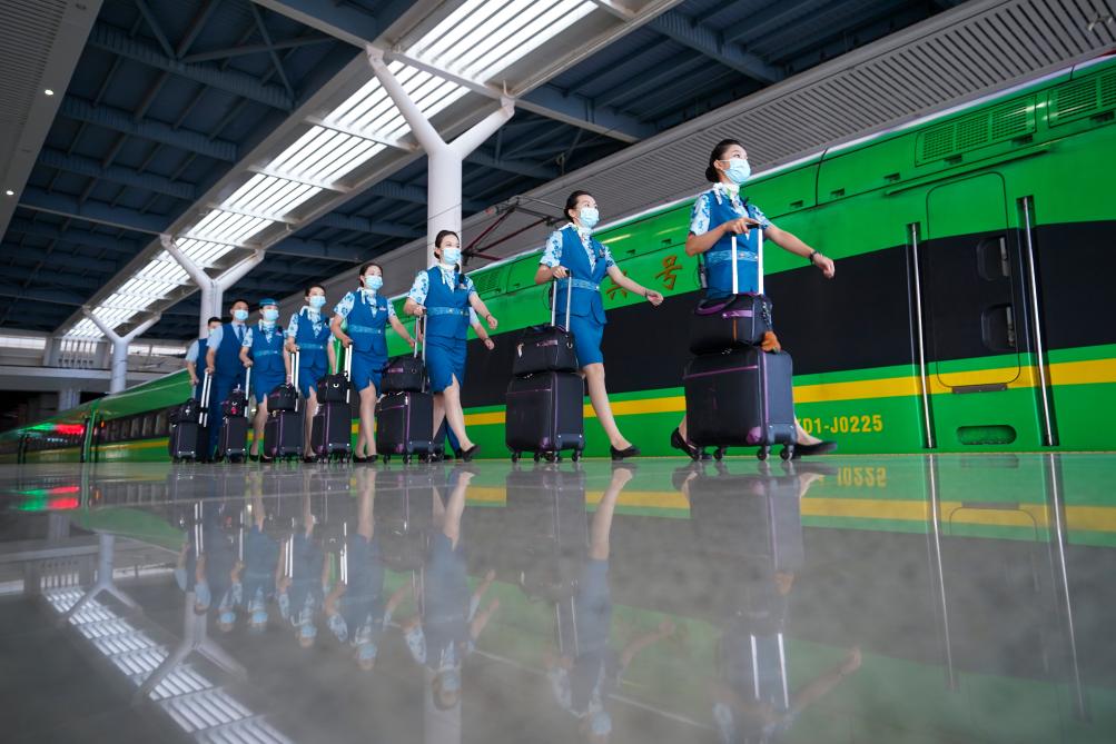 中老鐵路國際旅客列車采取朝發夕至的運行模式,每日雙向對開各一列,全程包括昆明南、普洱、西雙版納、磨憨、磨丁、瑯勃拉邦、萬榮、萬象8個車站。包括鐵路口岸通關時間在內的全程旅行時間為10小時30分鐘,昆明至萬象間可實現當日通達。國際旅客列車的開行,讓中老鐵路完全發揮出跨境鐵路客貨運輸效應,為“一帶一路”建設譜寫了新的樂章。