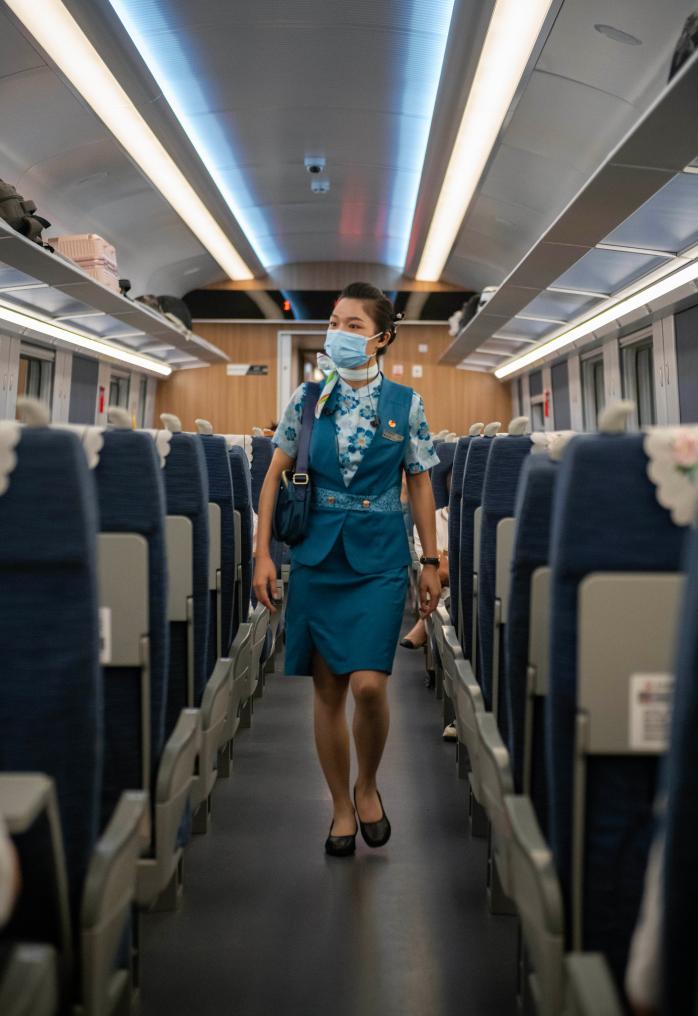 “我開心又激動,因為自己學的就是老撾語,可以發揮擅長的語言,把所學專業運用到工作當中?!被貞浧鸪蔀橹欣翔F路列車員的那一刻,依波逢至今很興奮,“然后想到我的家鄉勐臘,更激動,因為回家更方便了?!?/p>