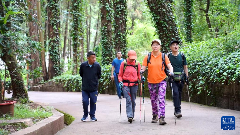 游客漫步在林蔭小道上,夏天的愜意在此刻盡顯,很多學生也趁著假期和家人一起出游,放松心情。