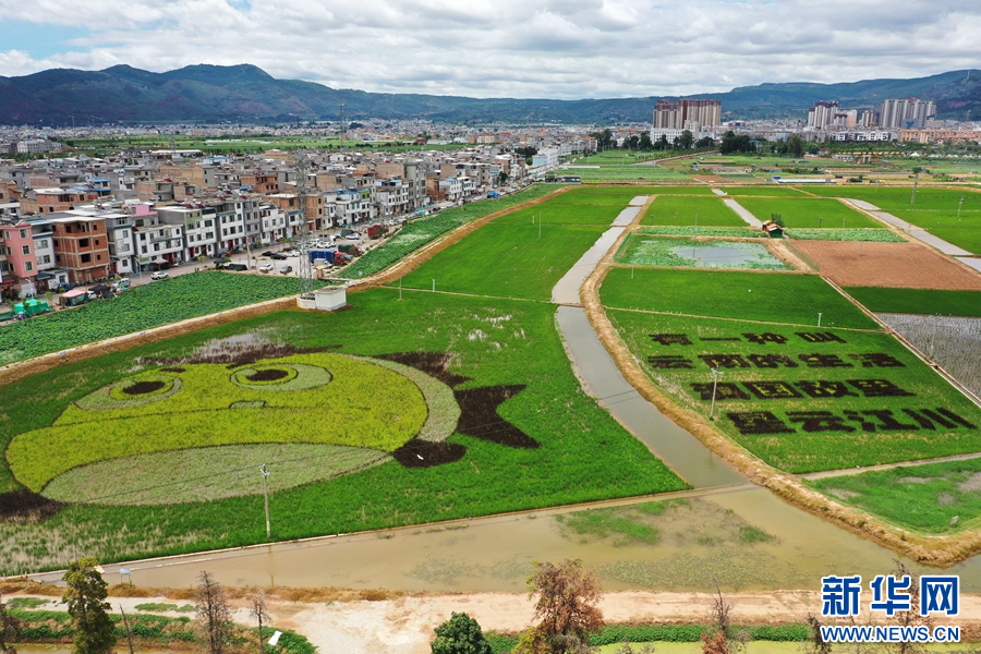 玉溪市江川區以“有一種叫云南的生活”為主題的稻田藝術畫(攝于7月11日)。新華網發(李丹 攝)