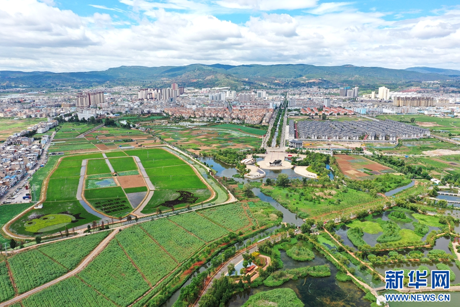 航拍視角下的玉溪市江川區局部(攝于7月11日)。新華網發(李丹 攝)