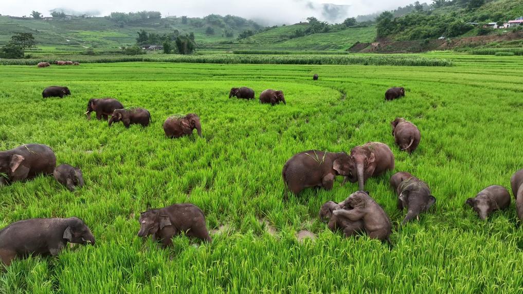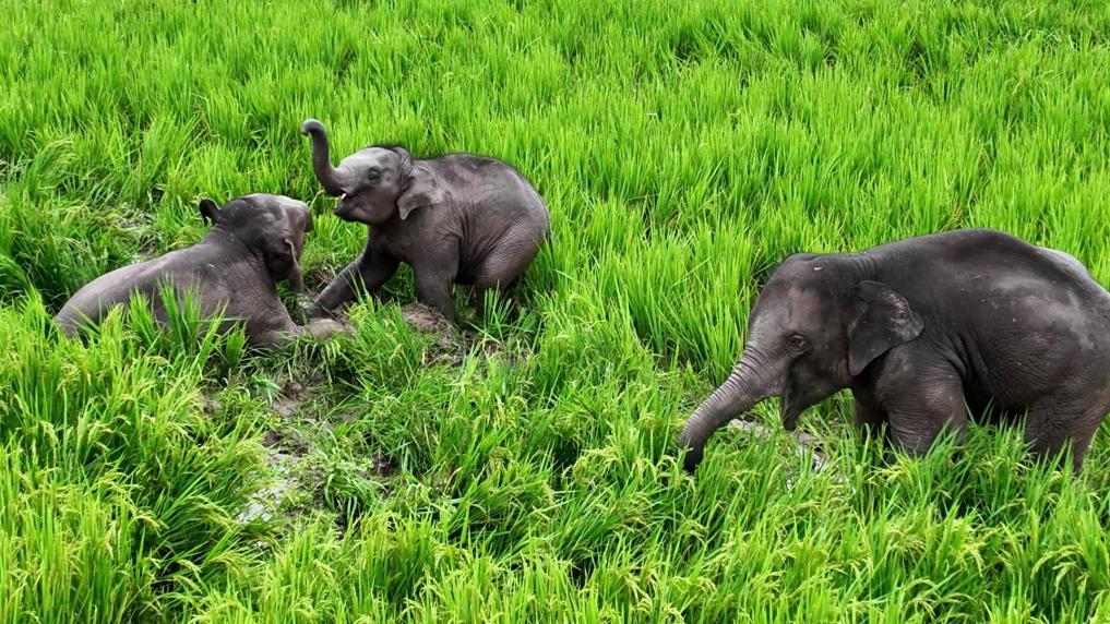 近日,記者在云南省普洱市江城哈尼族彝族自治縣拍攝到一群亞洲象在稻田里集體覓食的視頻,經過清點,在這片區域覓食的亞洲象共有30余頭。
