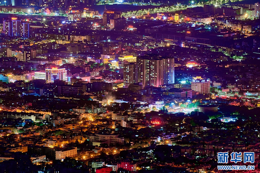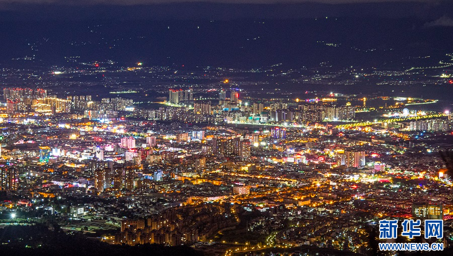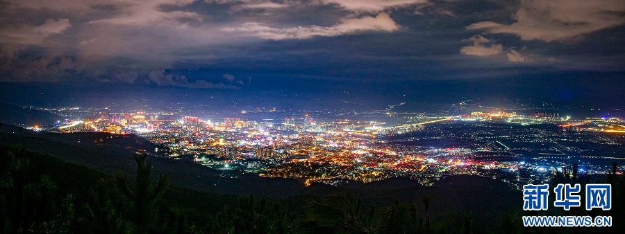保山城市夜景全景圖(7月21日 攝)。新華網發(郭康 攝)