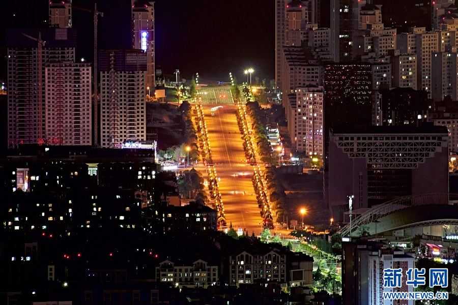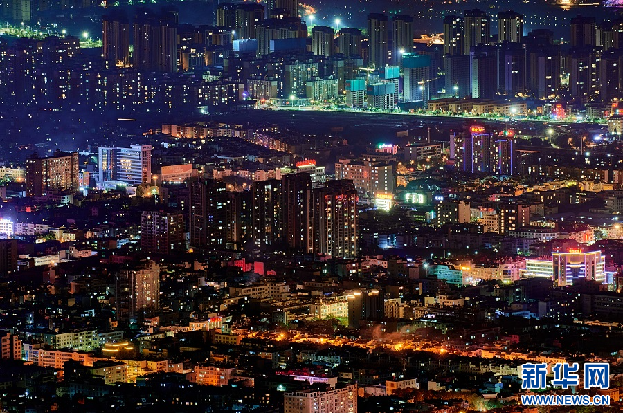 近日,在云南省保山市,攝影師用延時攝影拍攝下了保山城的夜色,五彩斑斕的霓虹燈把城市裝點得流光溢彩。(完)(邵維岑 郭康)