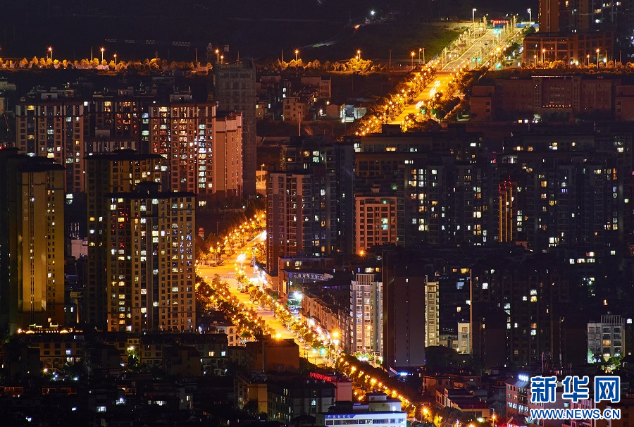 保山城市夜景(7月21日 攝)。新華網發(郭康 攝)