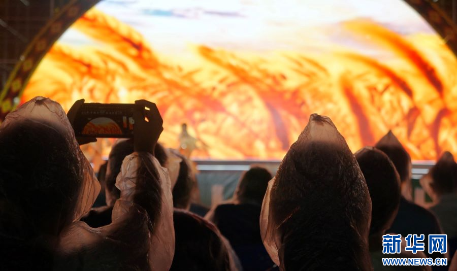 下著雨,觀眾穿著雨衣拍攝(攝于8月4日)。新華網 范芳鈺 攝