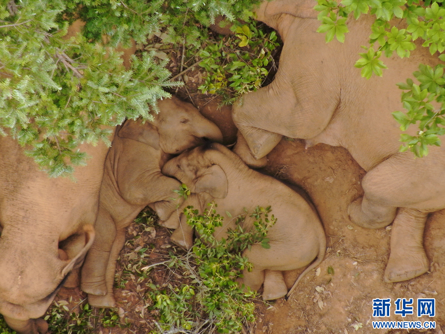 北上南歸象群在旅途中留下的影像(2021年6月26日攝)。新華網發(玉溪市委宣傳部 供圖)