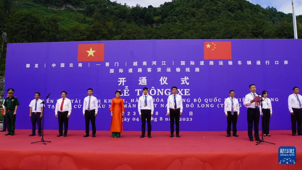 在中越兩國各方面的支持推動下,2022年12月,“中國都龍口岸—越南箐門口岸”新增為中越國際道路運輸車輛通行口岸,“文山—天??诎叮ㄖ袊┲燎逅诎叮ㄔ侥希咏?、“文山—都龍口岸(中國)—箐門口岸(越南)—河江”2條國際道路客貨運輸線路新增為中越國際道路運輸線路。都龍口岸國際道路運輸車輛通行口岸及國際道路運輸線路的開通,有利于充分發揮中越兩國的交通及旅游資源優勢,將大幅縮短兩國間貨物往來時間,有力促進中越經貿供應鏈暢通和物流合作,促進沿線地區交通領域聯動發展,推動沿線經濟社會發展,廣泛惠及兩國和兩國人民。
