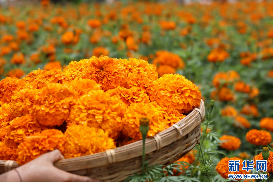 爆炒萬壽菊(8月3日攝)。新華網發(施甸縣融媒體中心供圖)