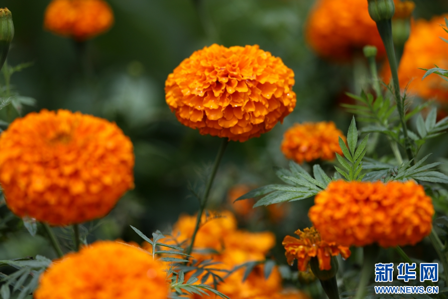 盛開的萬壽菊(8月3日攝)。新華網發(施甸縣融媒體中心供圖)
