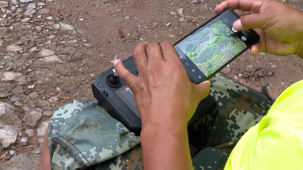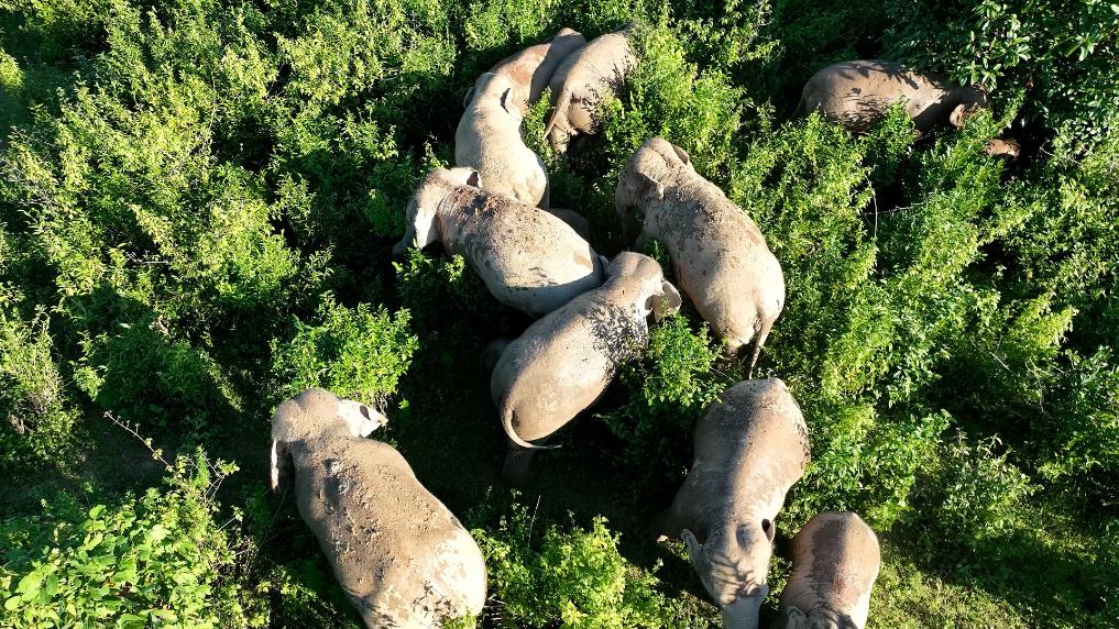 一大早,在一條公路邊拿出無人機搜索后,江城縣亞洲象監測員郭興祥發現了附近正在活動的亞洲象,他趕緊讓現場村民幫忙發送預警信息。