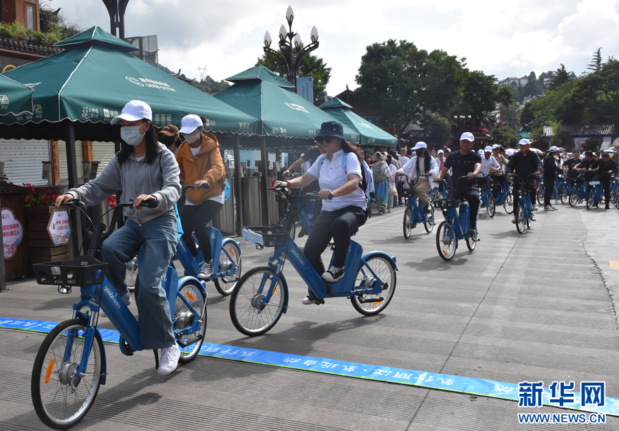 “氫行麗江 氫近自然”2023年麗江氫能自行車公益騎行活動現場(8月13日攝)。新華網發(陳俊佳 攝)